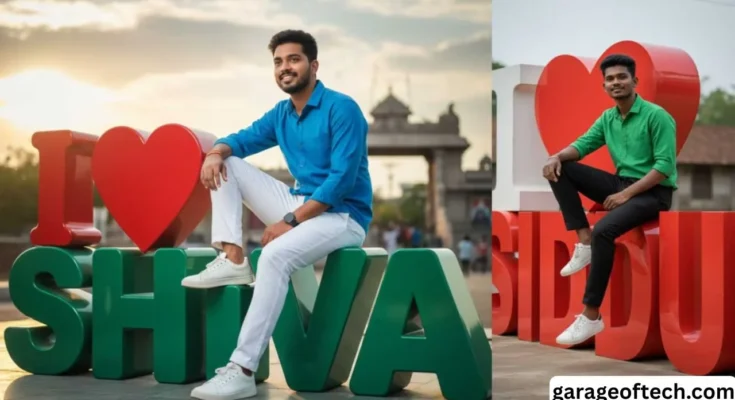 “Use the uploaded photo of the young man as reference for his face and posture. He is wearing white pants, a crisp bright blue shirt, and white sneakers. He is sitting casually on top of **slightly smaller, bold, glossy 3D letters** that spell “I ♥️ SHIVA” in all caps, scaled naturally to sit comfortably. The 3D letters are reflective, bright green, with smooth reflections and moderate shadows. I ♥️ should be in red color. The man is sitting naturally, one leg slightly bent, with a relaxed, confident, and happy expression, gentle smile, and thankful look. The scene has **cinematic lighting** with soft shadows and realistic highlights, ultra-realistic 8K photo quality, vibrant colors, high depth of field, and a natural, dramatic atmosphere. **Aspect ratio 3:4**, vertical composition.”
